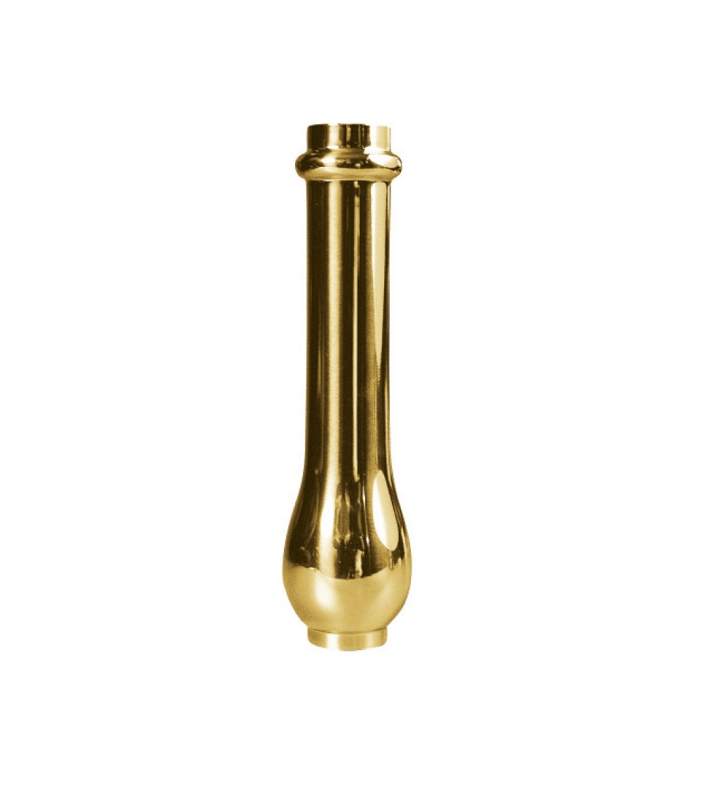 Macolla de latón con acabado en brillo utilizado como forja decorativa para tubo redondo. Este accesorio en latón se utiliza como adorno en puertas de forja, ventanas de forja o balcones de forja. Se combina con balaustres de hierro forjado, balaustres de hierro fundido o balaustre de aluminio fundido. La medida estándar es de 215 mm alto x 55 mm ancho. Piezas y accesorios de hierro fundido a medida, también realizamos cualquier diseño de hierro fundido y forja decorativa. Consulta a nuestro equipo de diseño especializado. Aquí los límites del metal, los pones tú. Llámanos para informarte al 923 24 33 98 o escríbenos a info@pachecoforja.com