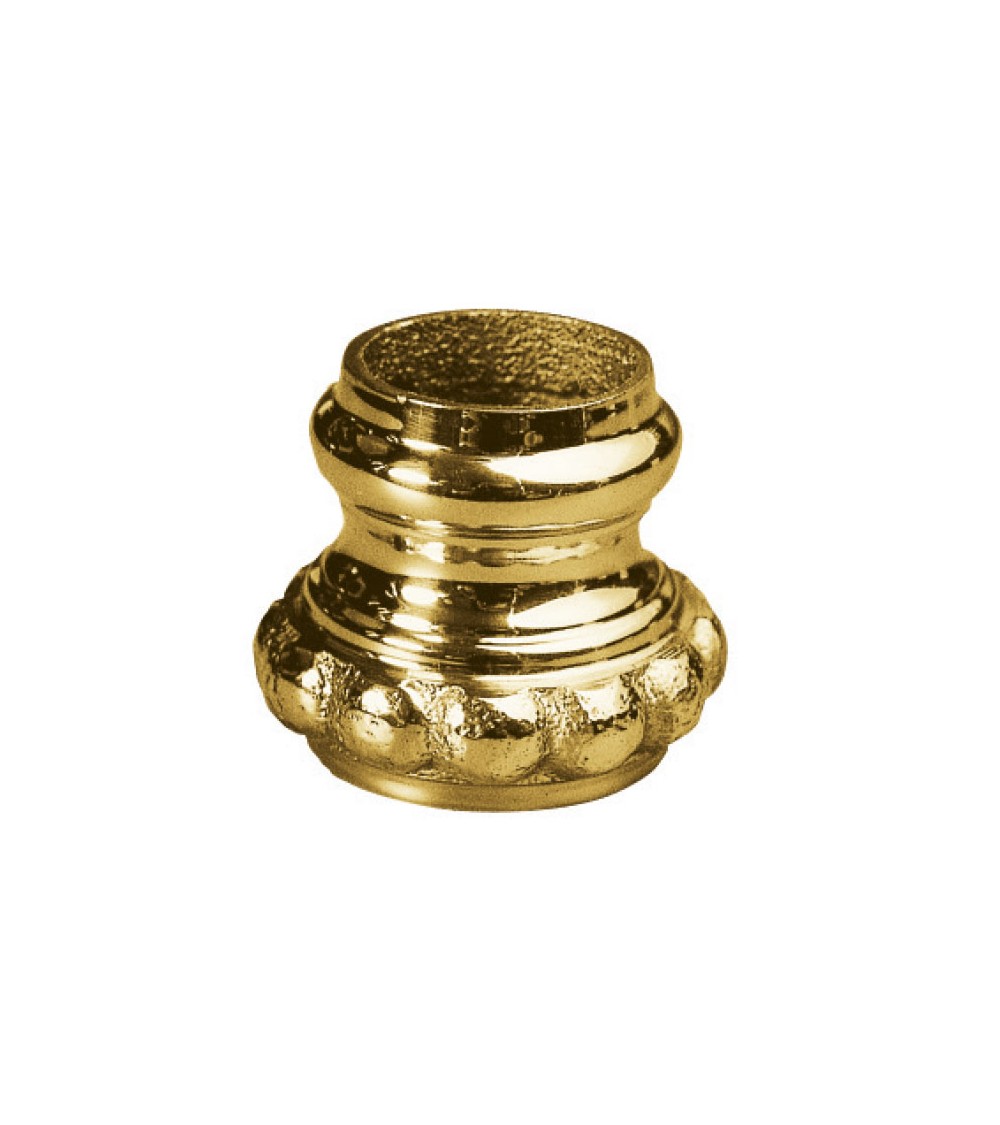 Macolla en latón brillo para barrote de forja redondo con franja perlada abombada para rejas y puertas de entrada
