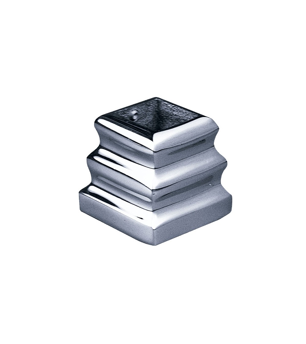 Macolla en latón cromado para barrote de forja cuadrado decorativa para portales y puertas de forja