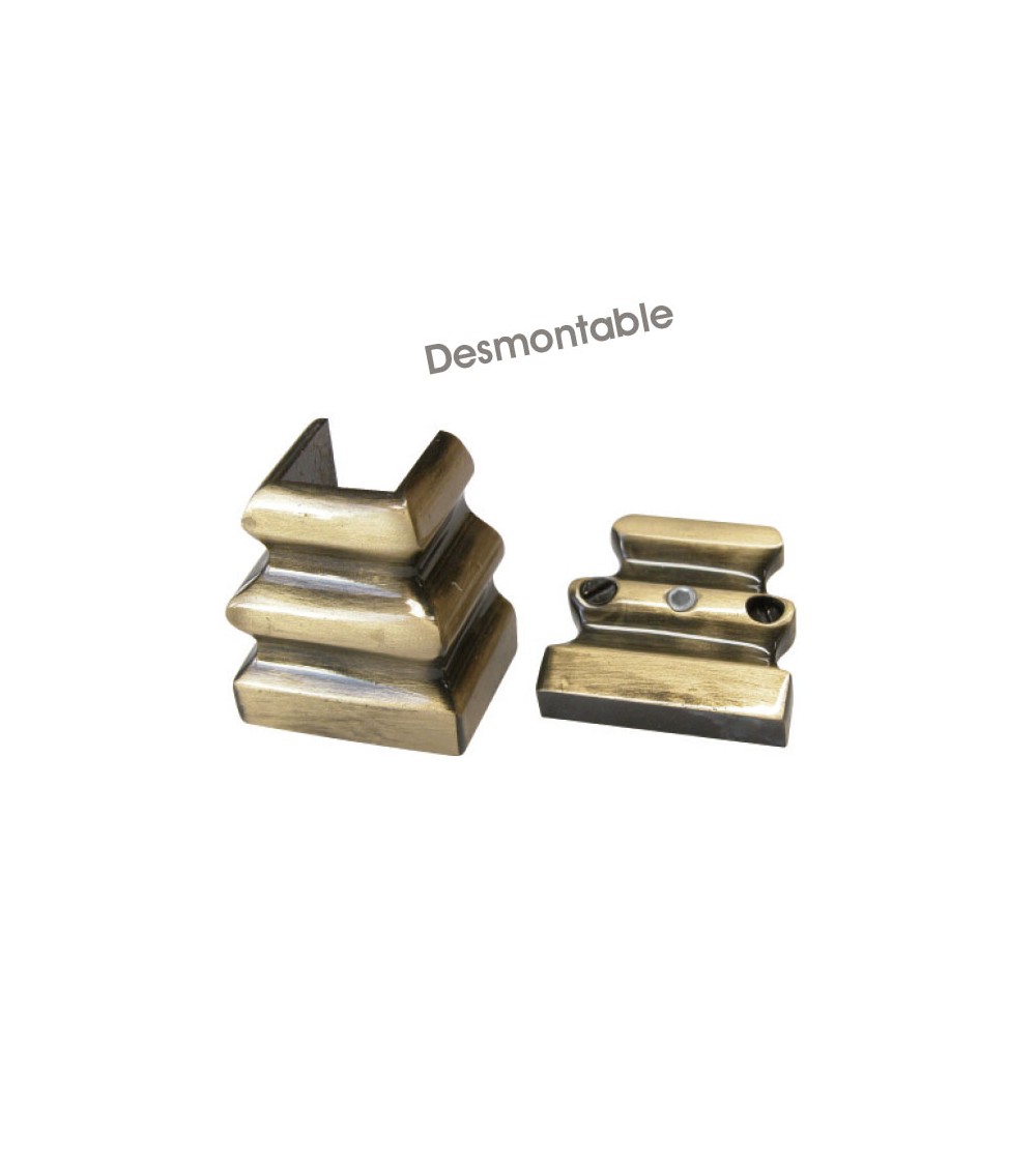 Macolla en latón patinado para barrote de forja cuadrado desmontable decorativa para barandillas y rejas de acceso