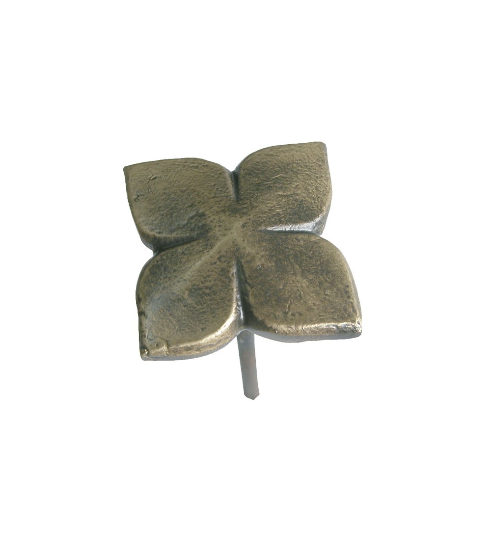 Clavo en latón patinado de cuatro hojas para decoración de puertas de estilo rústico