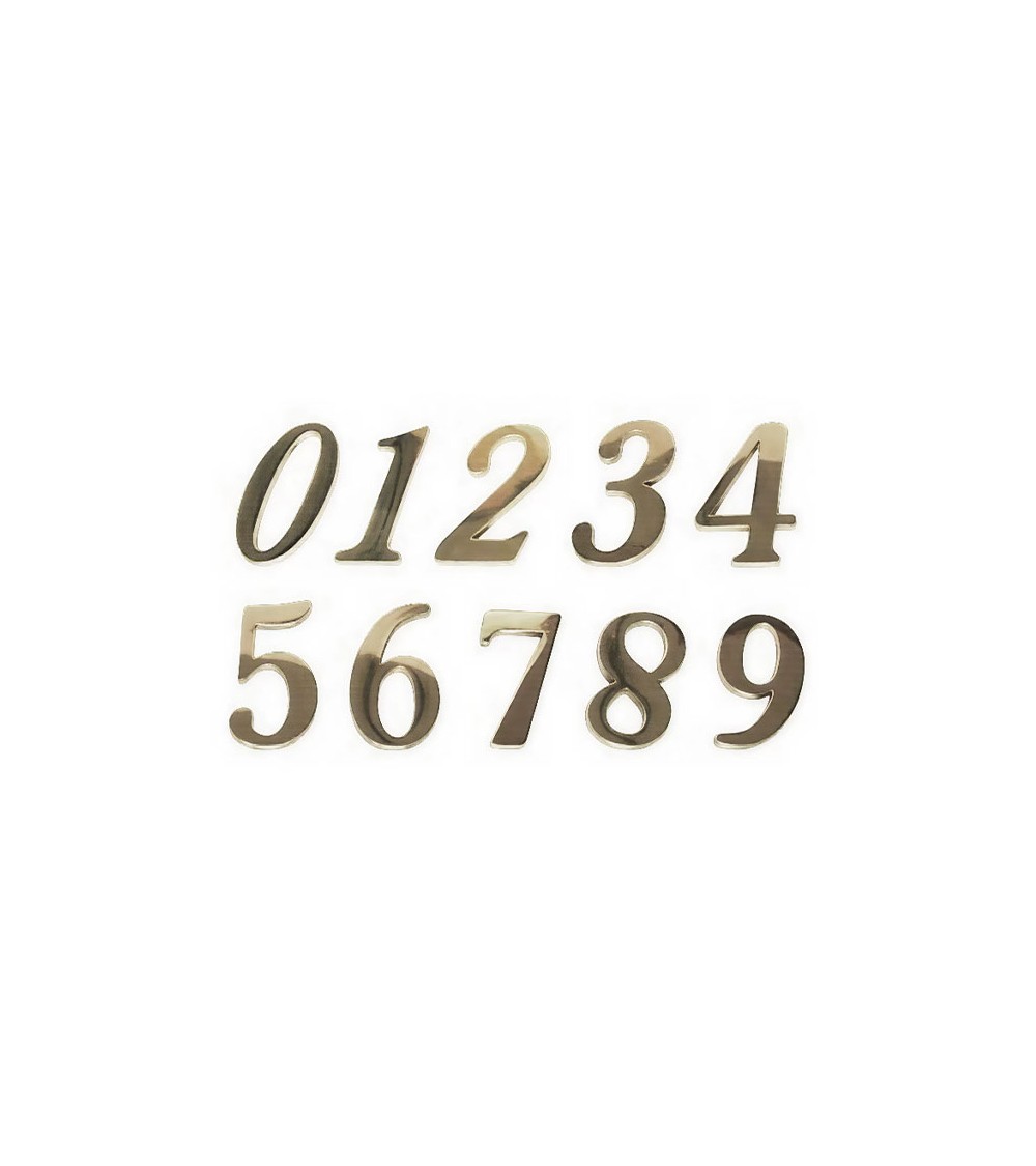 Números en latón patinado utilizado como herraje decorativo para letras y números en fachadas. Utilizado como señalética de latón. Fabricado en latón, lleva en la parte posterior un espárrago de M5: