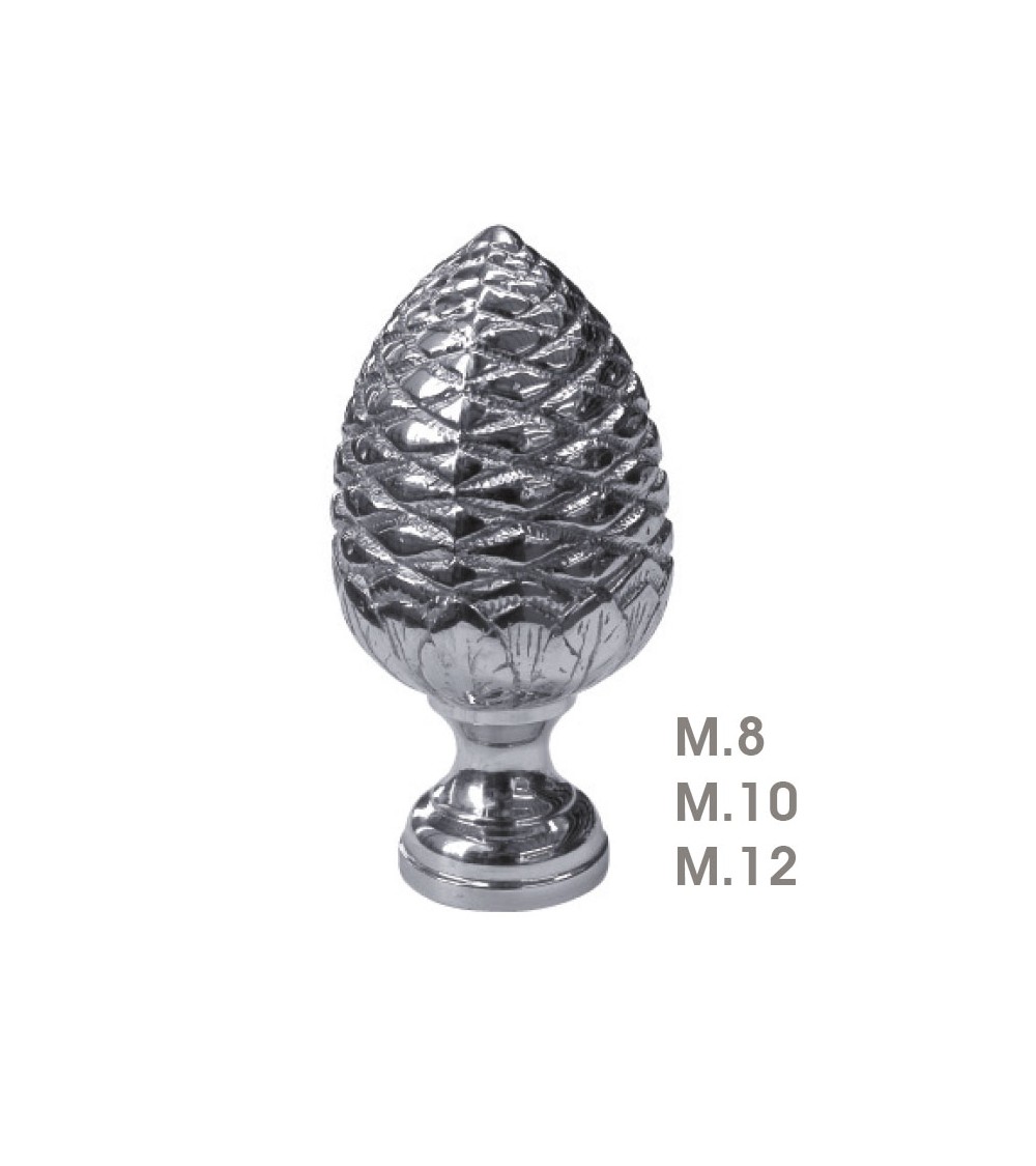 Remate en latón cromado tipo piña labrada para barandillas y escaleras decorativas