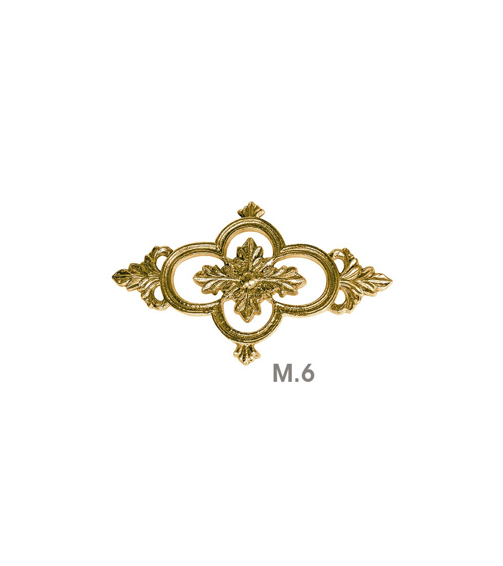 Rosetón en latón brillo decorativo trebol cuatro hojas para portales y rejas de entrada