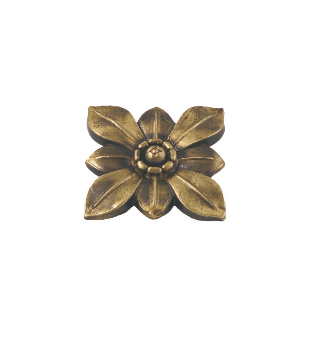 Rosetón en latón patinado floral cuadrado para puertas de portal