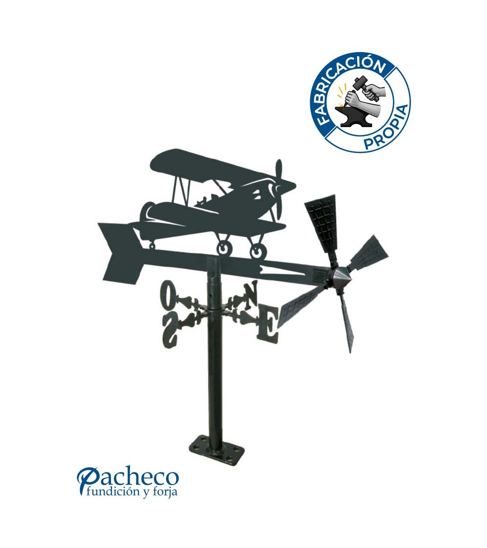 Veleta de Hierro Avión Biplano para Jardín - Veleta de Viento con Aspas Decorativa Fabricada en España