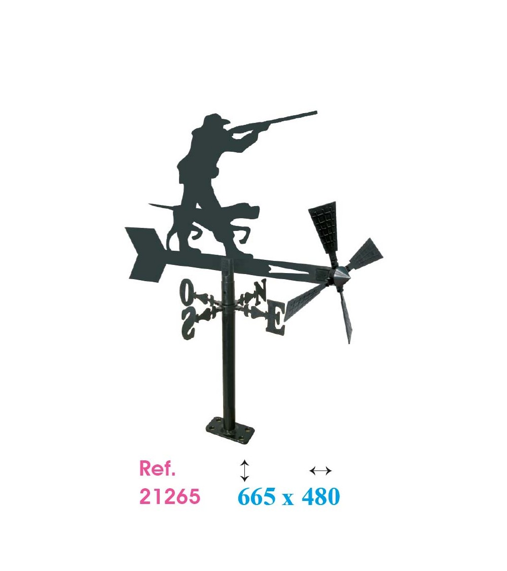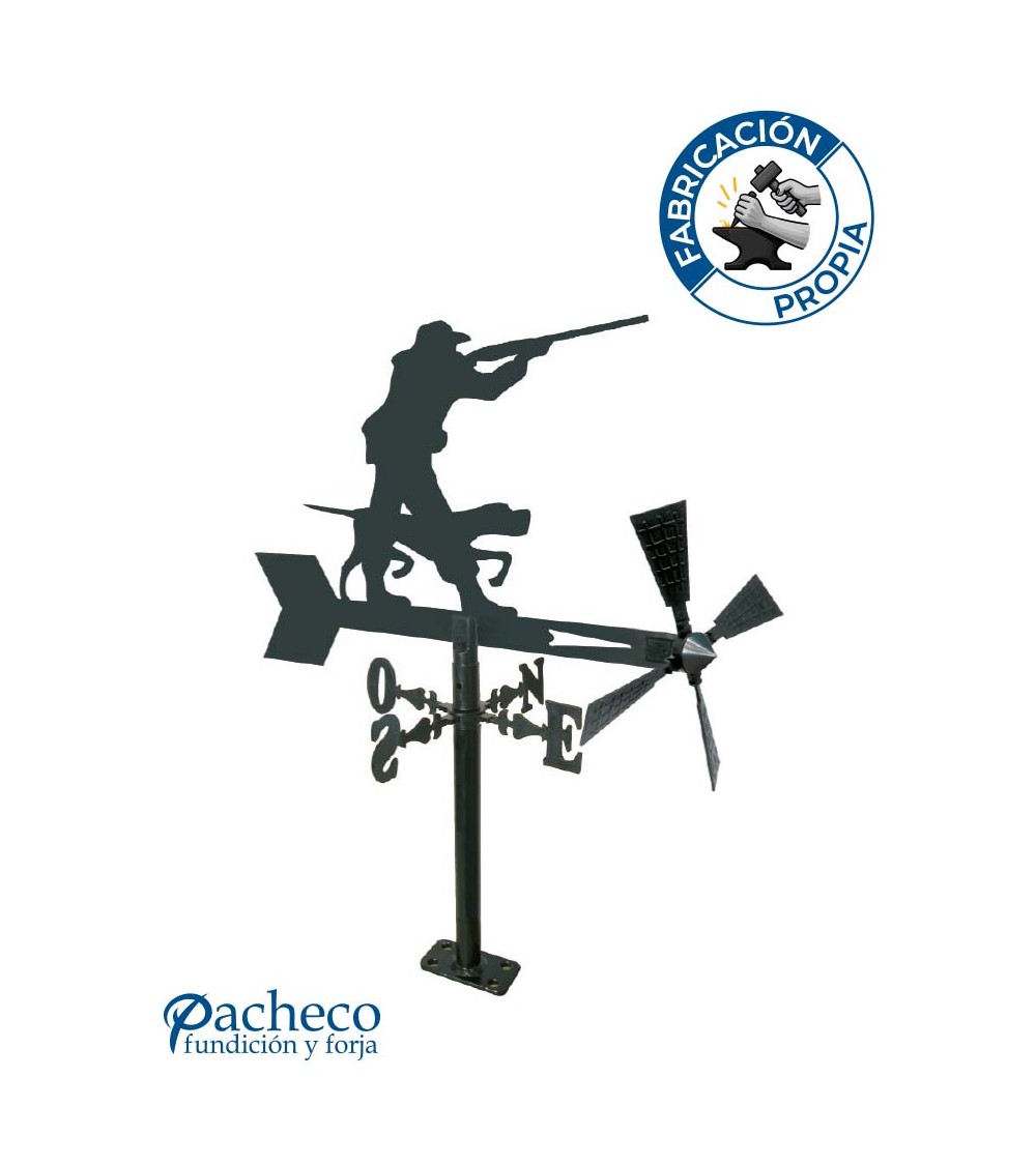 Veleta de Hierro Cazador con Perro para Jardín - Veleta de Viento con Aspas de Caza Fabricada en España