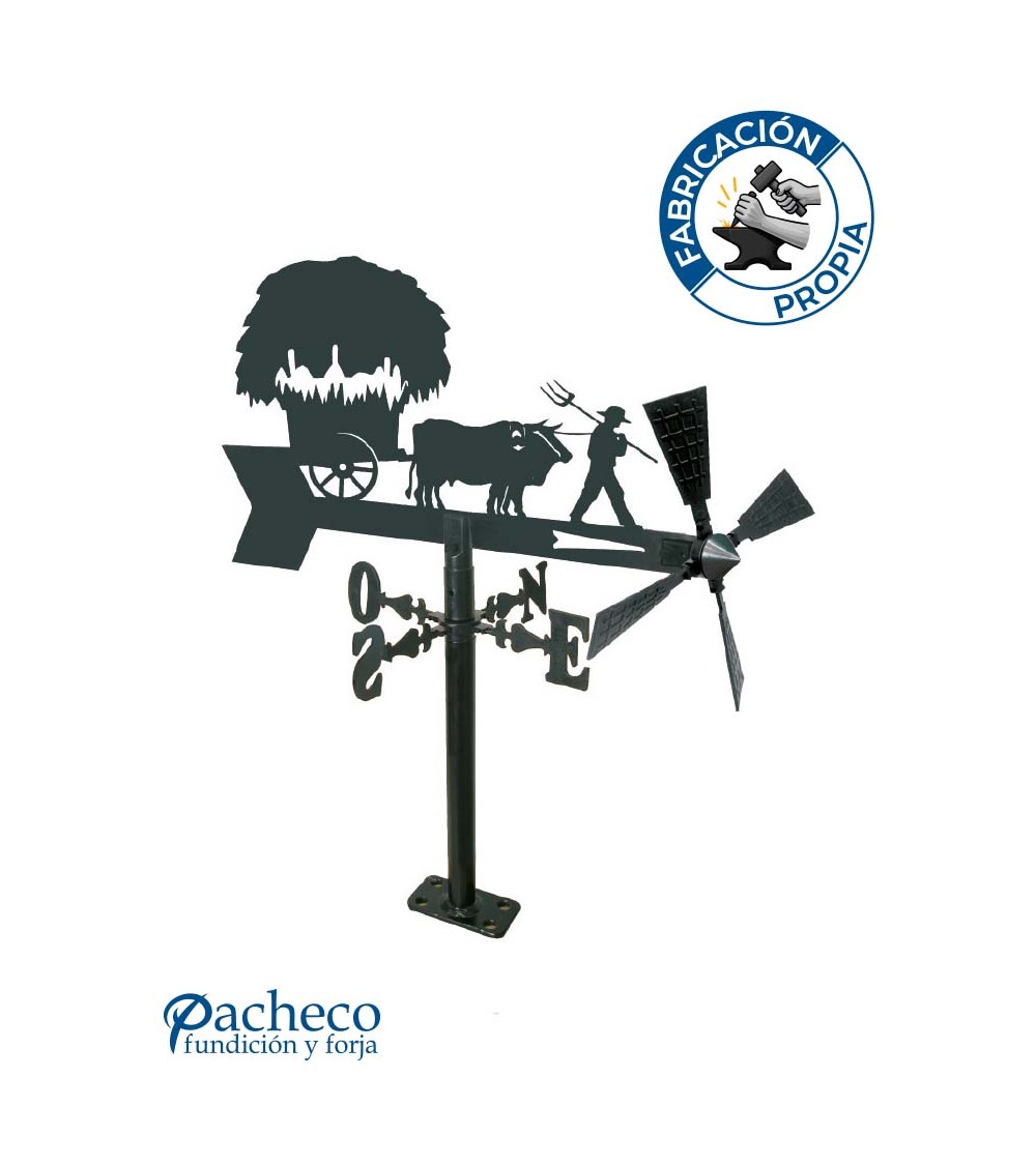 Veleta de Hierro Carro con Bueyes para Jardín - Veleta de Viento con Aspas de Oficios Tradicionales Fabricada en España