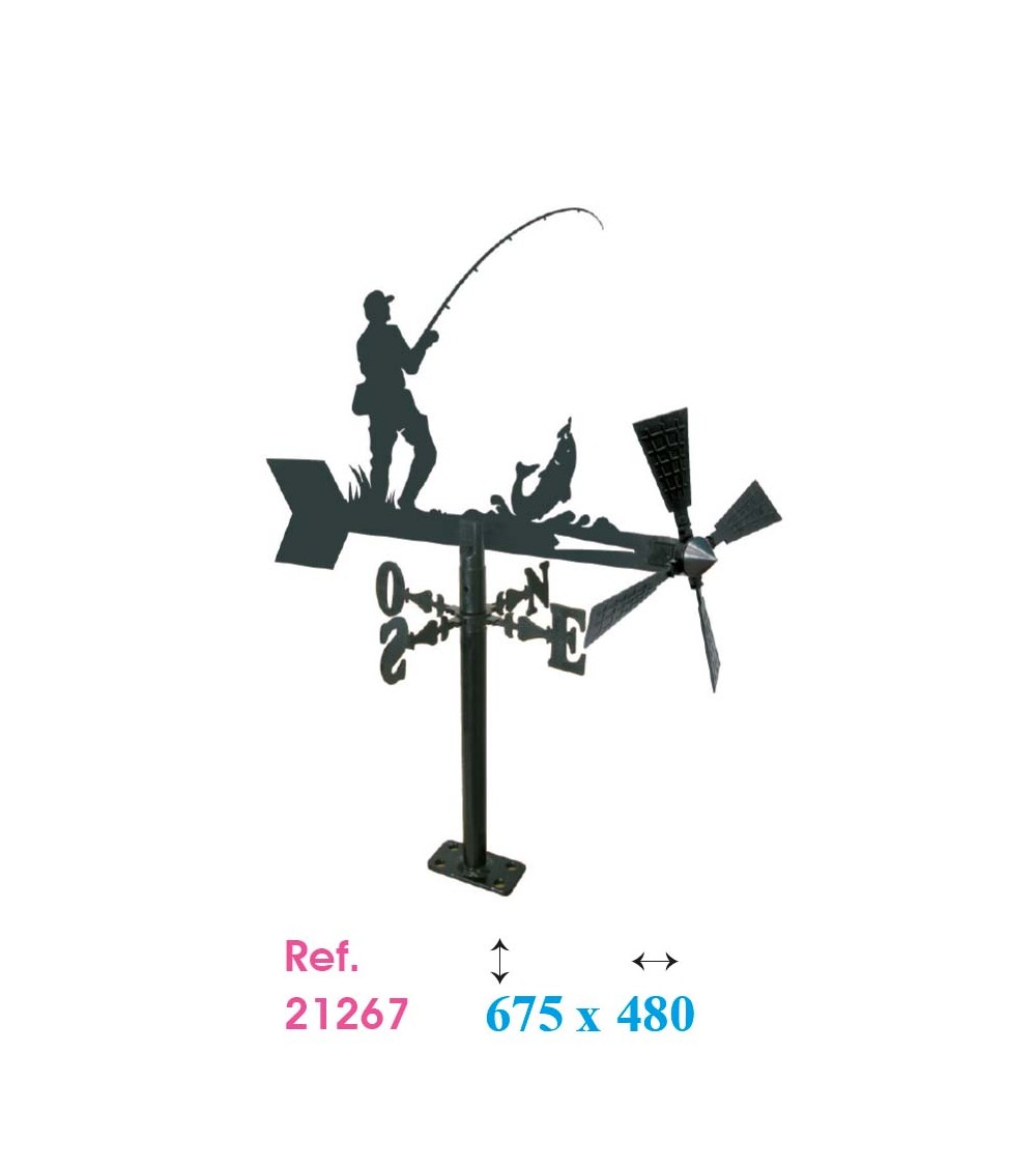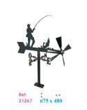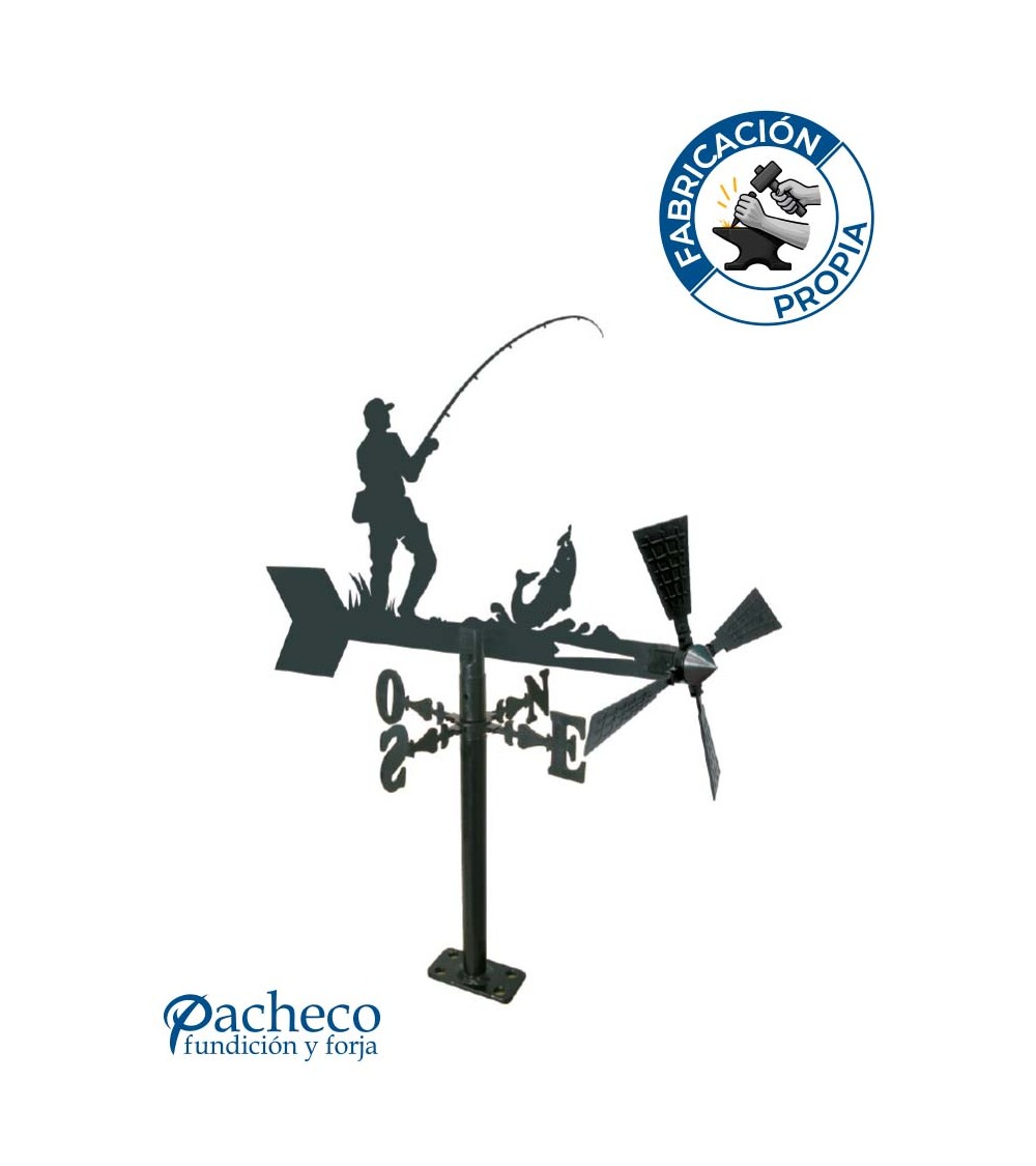 Veleta de Hierro Pescador para Jardín - Veleta de Viento con Aspas de Oficios Tradicionales Fabricada en España
