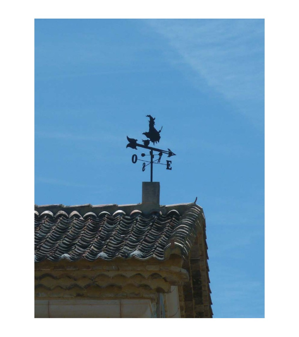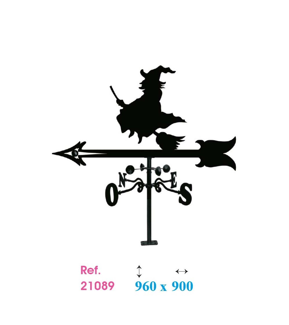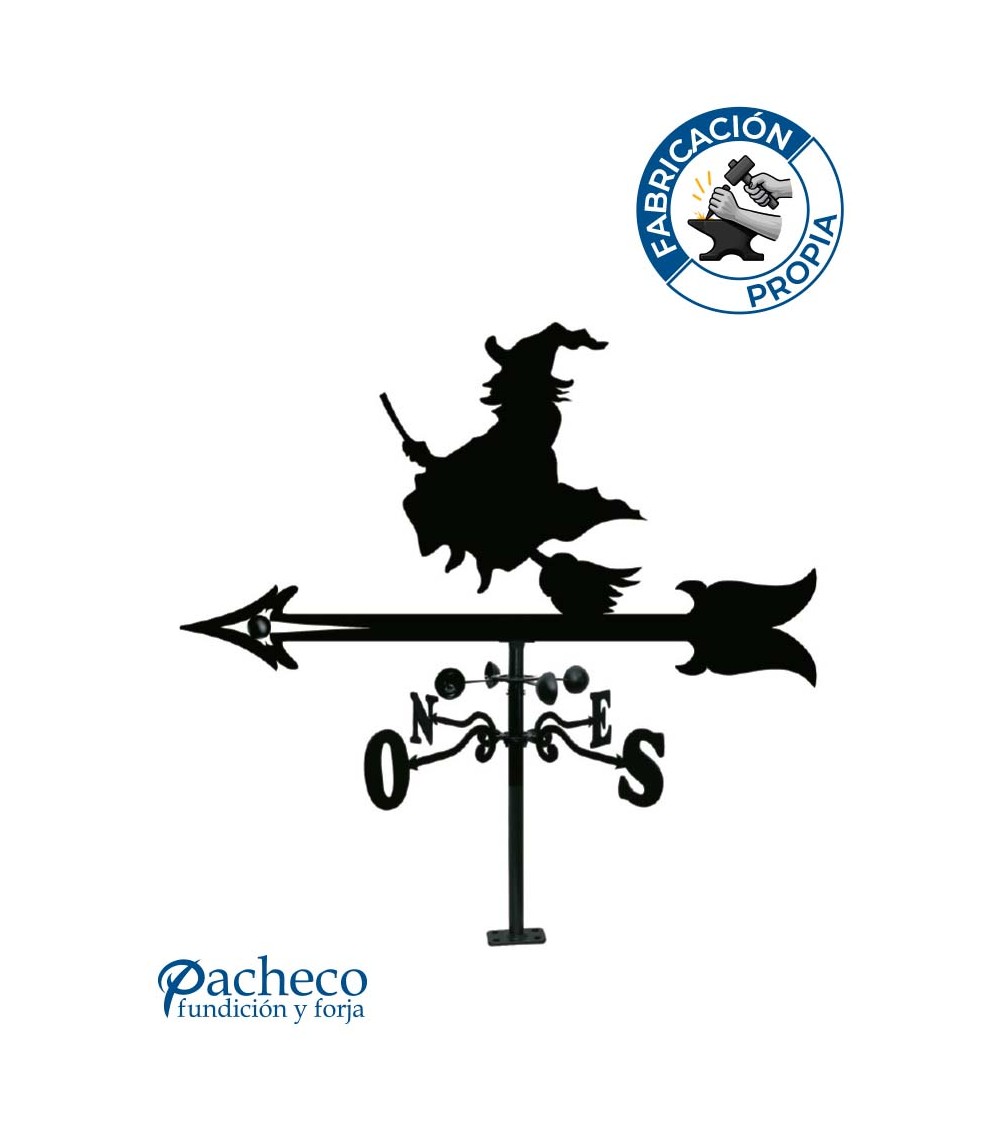Veleta de Hierro Bruja Volando en Escoba para Tejado - Veleta de Viento con Cazoletas Decorativa Fabricada en España