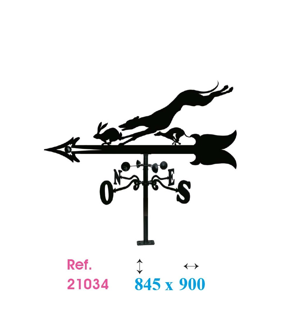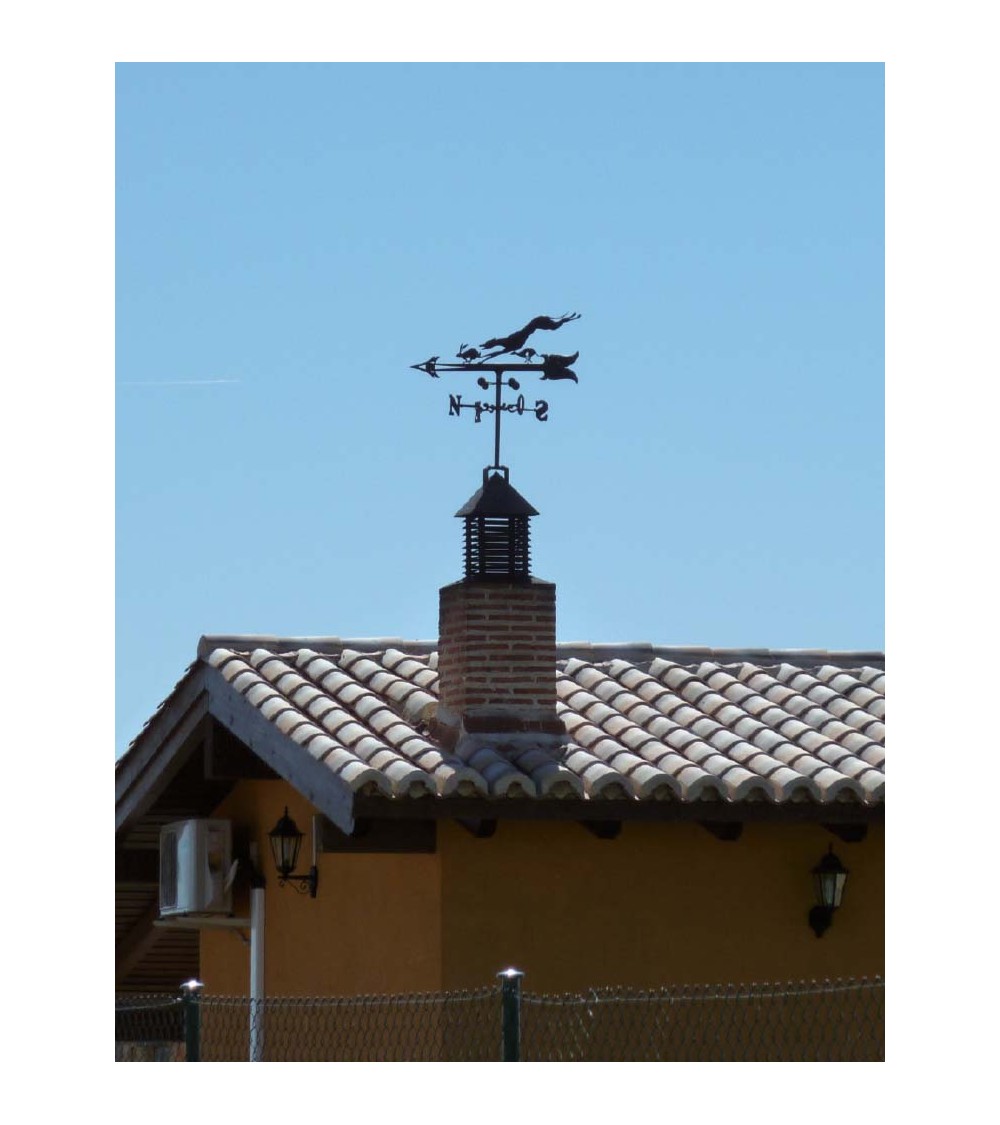 Veleta de Hierro Galgo Persiguiendo Liebre para Tejado - Veleta de Viento con Cazoletas de Caza Fabricada en España